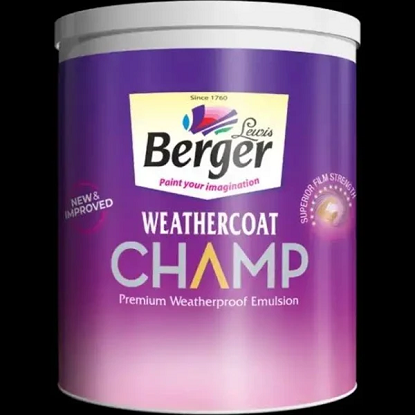 బర్జర్ వెదర్ కోట్ చాంప్ ఎమల్షన్ (P0 Bs) ఒక అధునాతనమైన బాహ్య గోడల కోసం తయారు చేసిన పెయింట్. ఇది వర్షం, ఎండ, తేమ వంటి ప్రతికూల వాతావరణ పరిస్థితుల నుండి గోడలను రక్షిస్తూ, మృదువైన మట్ ముగింపును ఇస్తుంది. ఈ పెయింట్ ఎక్కువకాలం కళ తప్పకుండా ఉంటుంది మరియు ఇండ్లు, కమర్షియల్ భవనాలకు అనుకూలంగా ఉంటుంది.