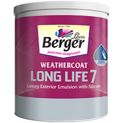 బర్జర్ వెదర్కోట్ లాంగ్ లైఫ్ 7 ఎక్స్టీరియర్ ఎమల్షన్ అనేది గోడలను రక్షించేందుకు రూపొందించిన ప్రీమియం ఎక్స్టీరియర్ పెయింట్. దీని ముఖ్య లక్షణాలు:7 సంవత్సరాల వారంటీనీరు తడవనివ్వని సిలికాన్ టెక్నాలజీదుమ్ము, శిలీంద్రాలు, ఆల్గీ నిరోధకతహై షీన్ ఫినిష్ (మెరిసే లుక్)కాలక్రమంలో రంగు మాసిపోని ఫీచర్ (2,000+ షేడ్స్)పర్యావరణ హితమైనదిగా సర్టిఫైడ్కవరేజ్: 1 లీటర్కు ~65–70 చదరపు అడుగులు (2 కోట్స్)డ్రై టైం: పైభాగం 1 గంటలో ఆరుతుంది; పూర్తిగా 6–8 గంటల్లోఈ పెయింట్ వర్షాలు లేదా తేమ ఉన్న ప్రాంతాల్లో ఉన్న ఇళ్లకు ఉత్తమమైన పరిష్కారం. Ask ChatGPT