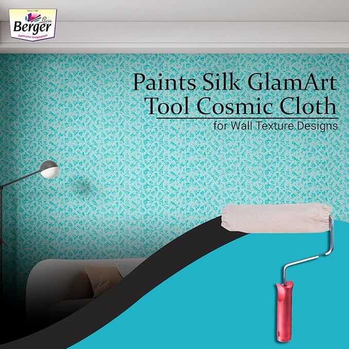 బెర్జర్ పెయింట్స్ సిల్క్ గ్లామ్ ఆర్ట్ కోస్మిక్ క్లాత్ టెక్స్చర్ రోలర్ అనేది గోడలపై అంతరిక్షం ప్రభావంతో కూడిన ప్రత్యేకమైన వస్త్రం నమూనాలను సృష్టించడానికి రూపొందించిన ప్రీమియం పూత సాధనం. 9 ఇంచుల పరిమాణం గోడలకు ప్రత్యేకమైన మరియు ఆధ్యాత్మికమైన లుక్ ఇస్తుంది. ఇది ఫీచర్ వాల్లు, లివింగ్ రూమ్స్, బెడ్రూమ్స్, ఆఫీసులకు అద్భుతమైన ఎంపిక.