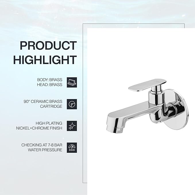 బలమైన నిర్మాణం: ఈ సింగిల్ హ్యాండిల్ బాత్రూమ్ ఫాసెట్ దృఢమైన బాస్ పదార్థంతో తయారు చేయబడింది. దీని మీద ఉన్న క్రోమ్ ఫినిష్ నీటి నష్టానికి ఎదురుగా మన్నికగా ఉండేలా రూపొందించబడింది.